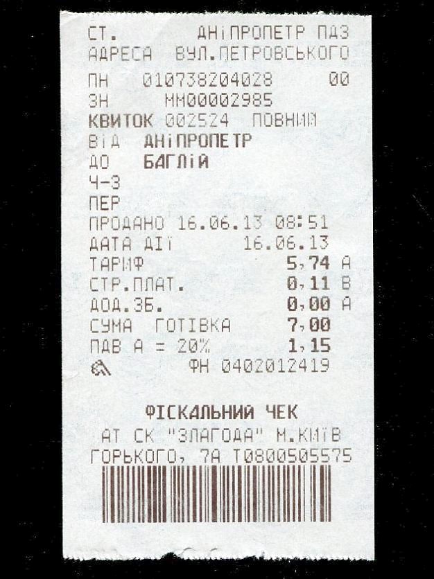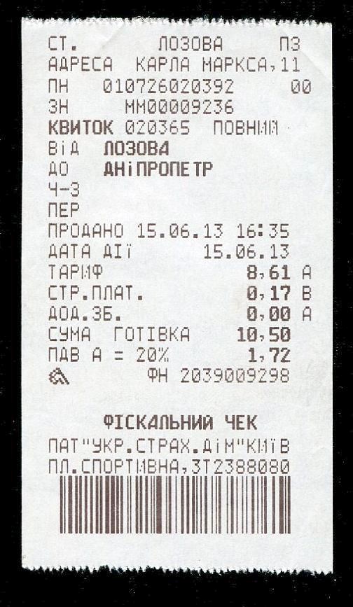 Билет Лозовая — Днепропетровск.