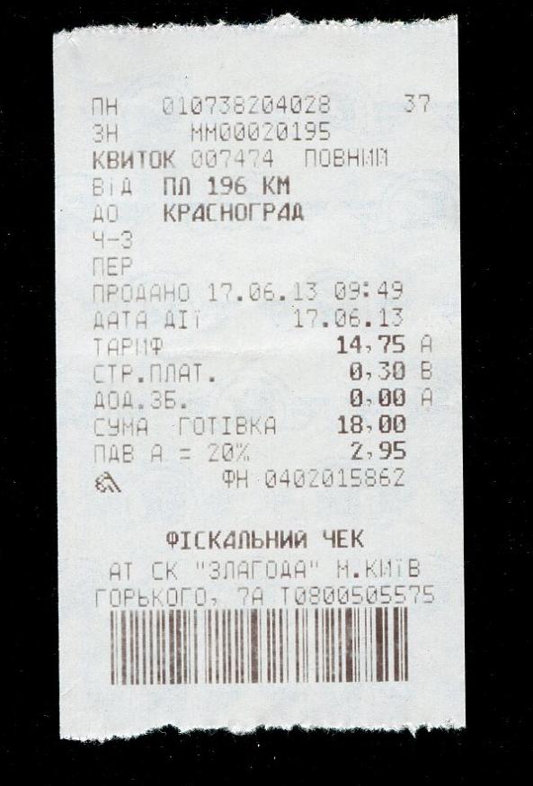 Билет 196 км — Красноград.