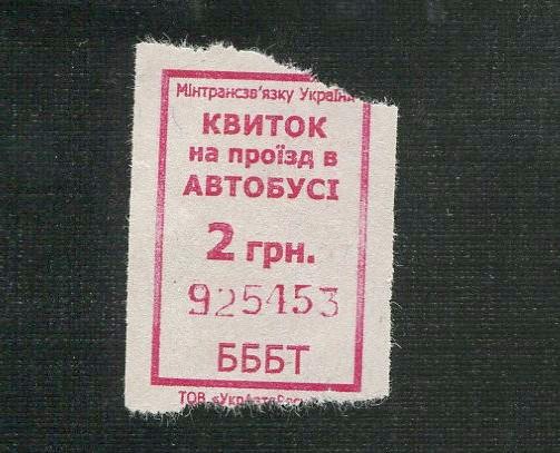 Билет из городского автобуса в Полтаве.