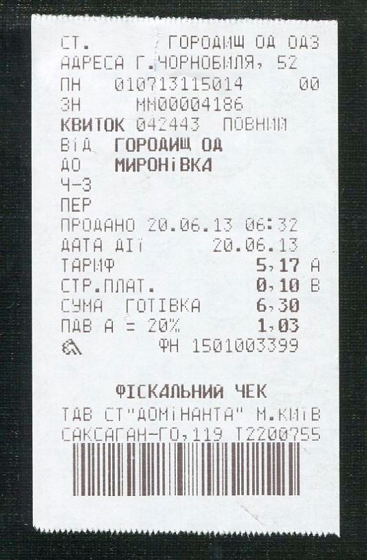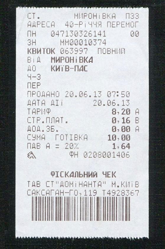 Билет Мироновка — Киев-Пассажирский.