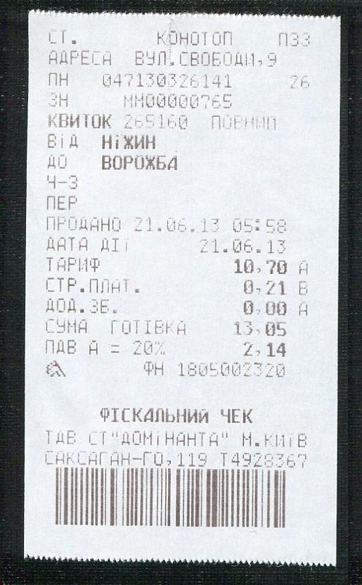 Билет Нежин — Ворожба.