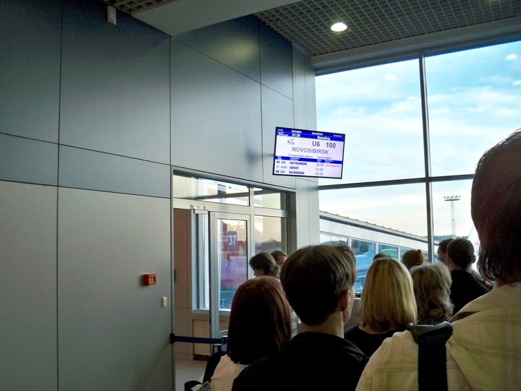 Продолжительность полёта — 4 часа, плюс три часа разницы во времени. В Толмачёво — 5 утра по местному времени. Впечатлило обилие машин с кемеровскими и алтайскими номерами, обилие таксистов, призывавших ехать в Новокузнецк и Барнаул. В Новокузнецке, Кемерово, Томске и Барнауле есть действующие аэропорты, но цены на перелёты туда являются менее доступными для народа, чем цены на перелёты в Новосибирск.