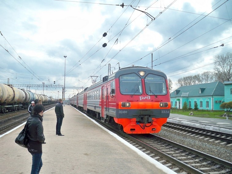 Станция Притаёжная, электропоезд ЭД9М-0232. Въезд сюда приводит к длительному общению с охраной
