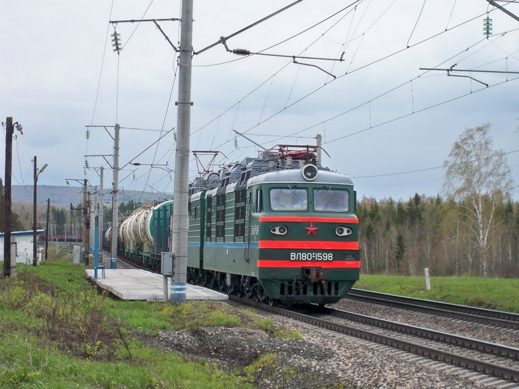 Покровка. Вид на восток. Электровоз ВЛ80-1598 ведёт грузовой поезд в сторону Ачинска.