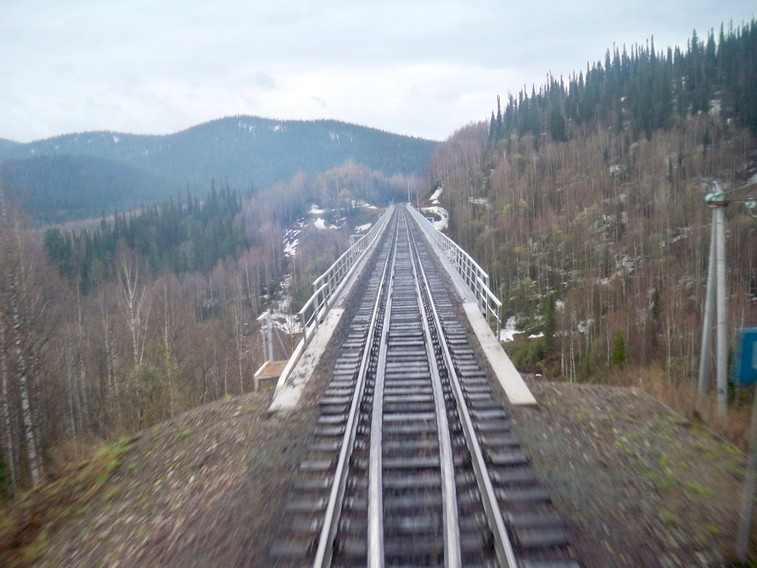 Линия Красная Сопка — Кия-Шалтырь. Виадук на перегоне Саланга — Кия-Шалтырь. Вид в сторону Красной Сопки.