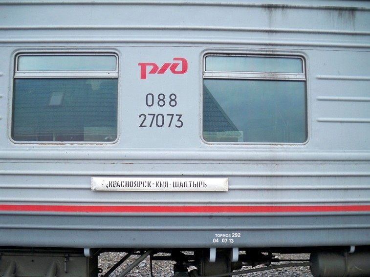 Ачинск. У первой платформы, ближайшей к вокзалу, стоял последний в истории поезд сообщением Красноярск — Ачинск — Абакан. От него уже отцепили вагон на Лесосибирск. В основной части состава последний вагон — мой, следует на Кия-Шалтырь. Проводник «нерусской» внешности. Вагон «забит» не полностью, но и далеко не пустой.