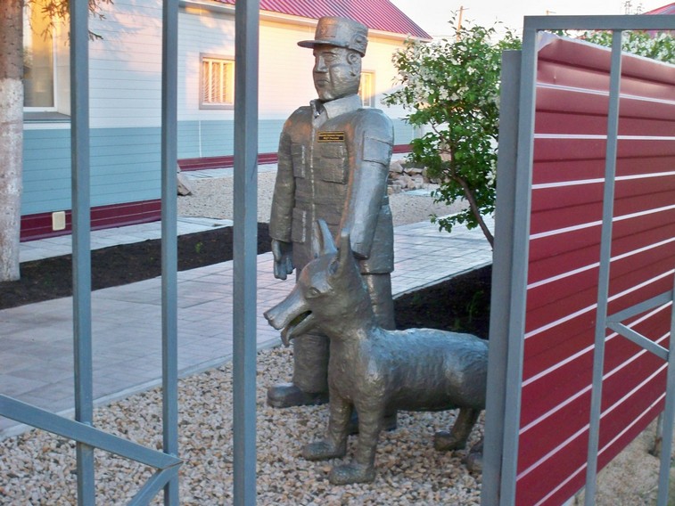 Там же. Скульптура ВОХРовца со служебной собакой.
