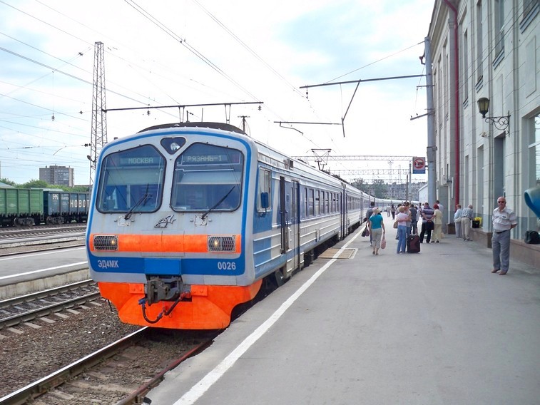 Станция Рязань I. Электропоезд ЭД4МК-0026, следующий в Москву.