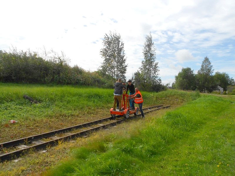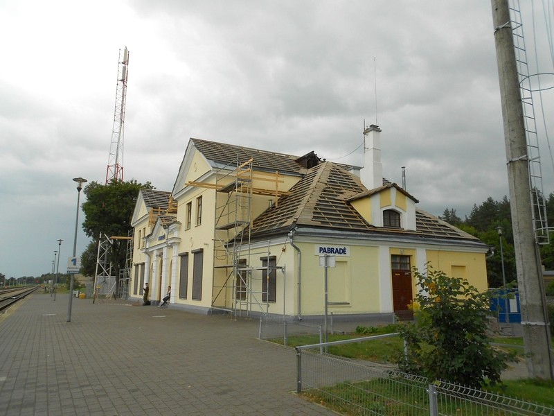 Оставляю в подарок книги «По рельсам и по земле» директору и машинисту. Затем двигаюсь на велосипеде в Пабраде (Побродье), местами под небольшим дождём.