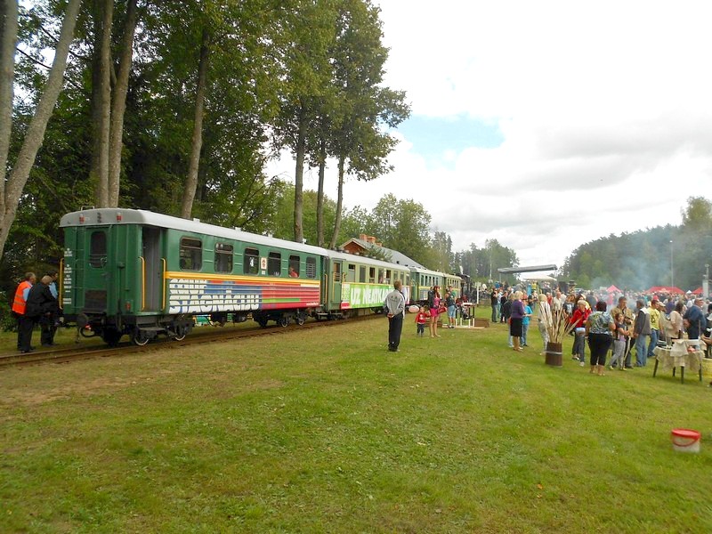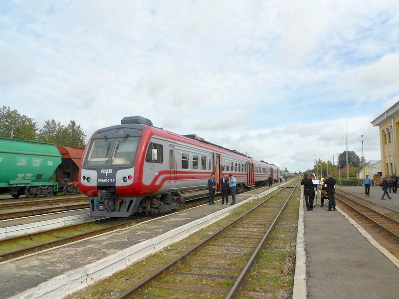 Вот и дизель-поезд редкого маршрута Рига - Гулбене. Сегодня, 3 сентября - главный праздник узкоколейной железной дороги в Гулбене.