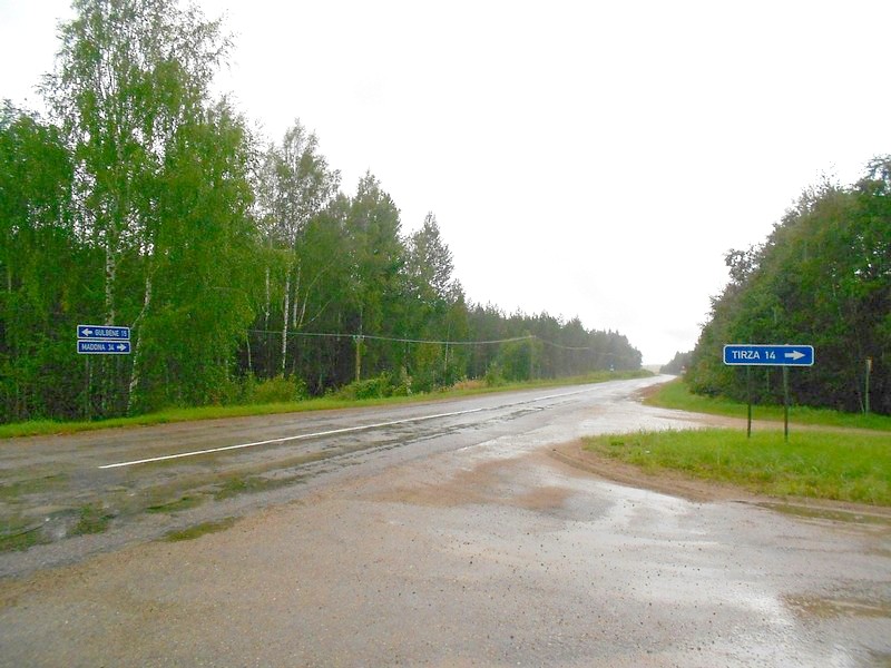 На выезде из Гулбене я в 17:05. Подвёз гражданин на большом белом джипе до поворота на Тирза, десять километров. Как оказалось, зря!