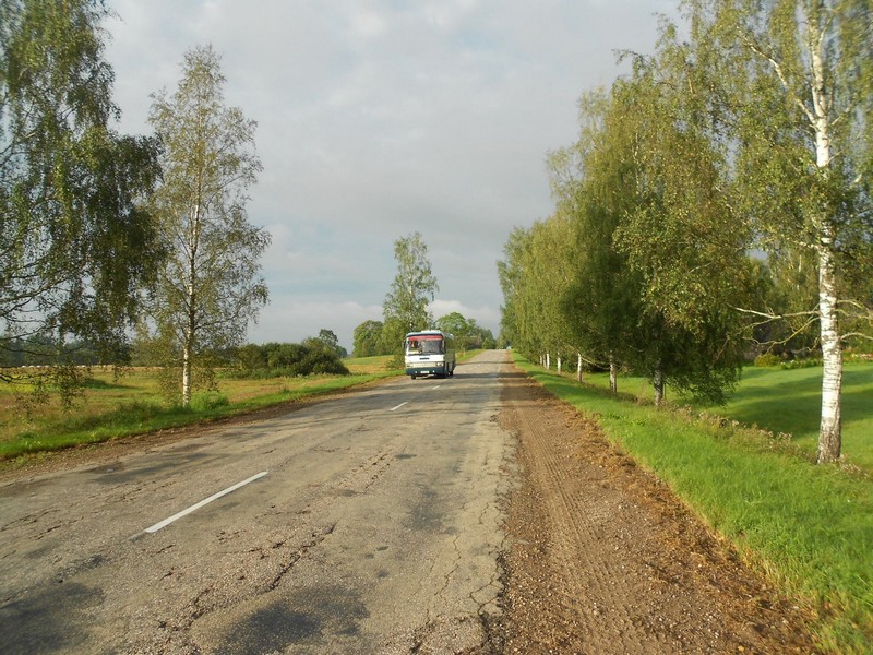 По пути только десять километров. Но впечатлённый путешествием, водитель провёз лишние тридцать километров, до развилки у Плявиняса.