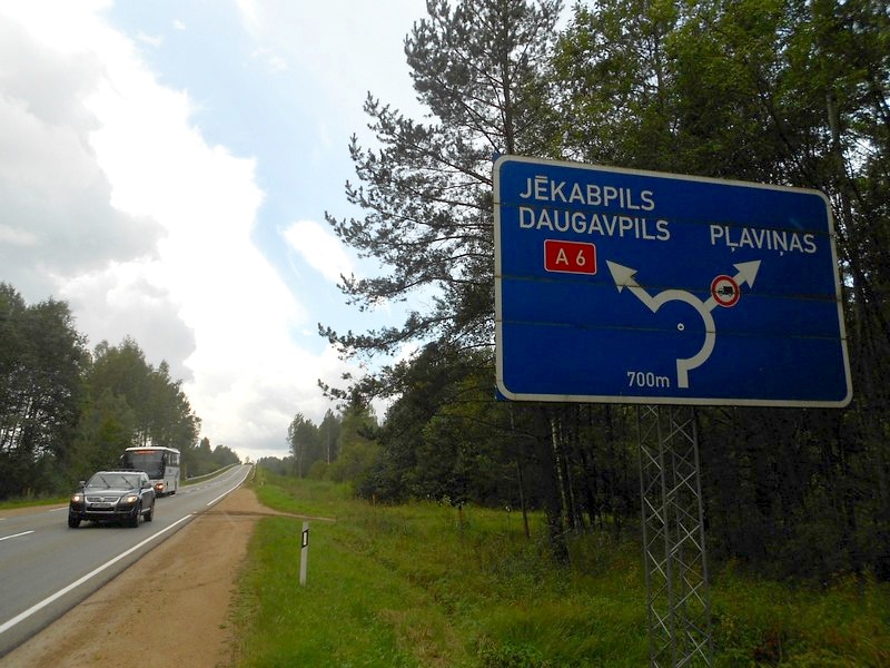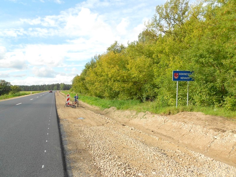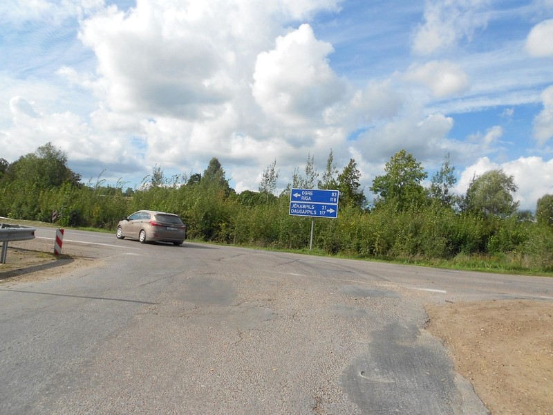 На северной окраине Мадоны я в 11:52. По объездной дороге - на южный выезд. C 12:30 снова автостоп. До Плявиняса по указателю - 44 километра.