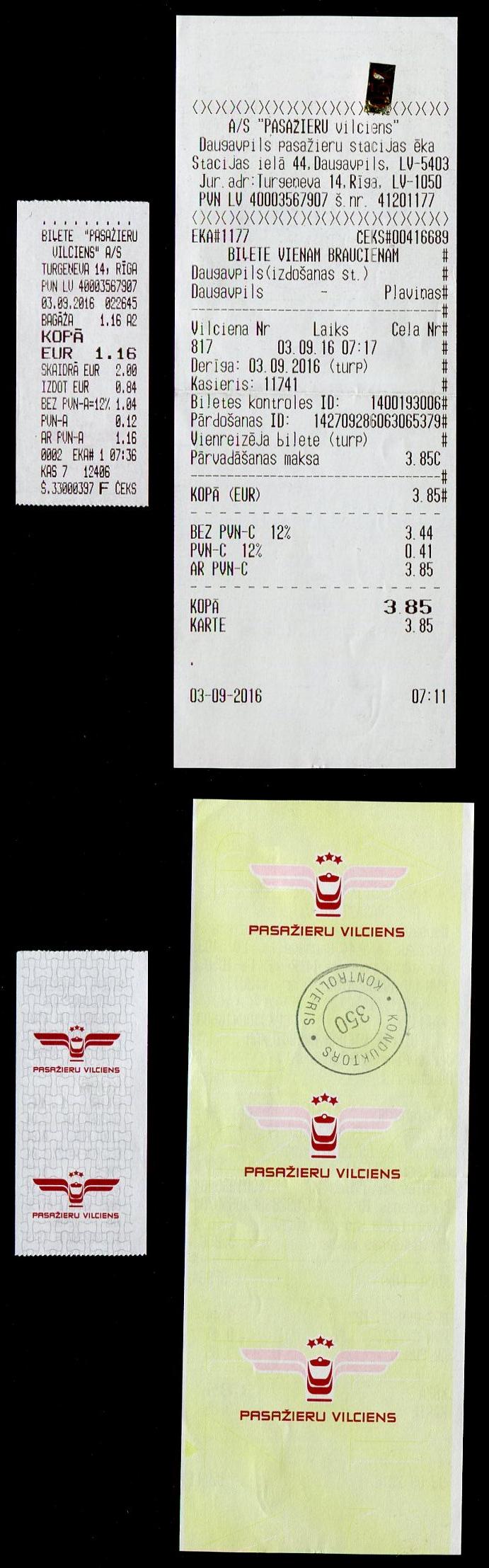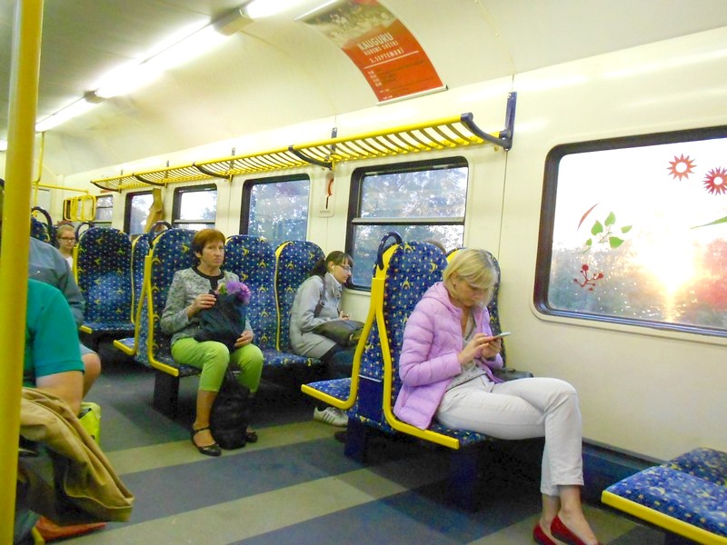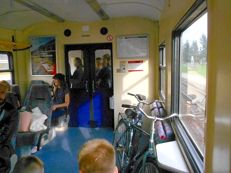 Билет до Плявиняса - 3,85 евро в вокзальной кассе. В поезде оказалось, что провоз велосипедов платный. Взяли ещё 1,16 евро. Здесь к этому относятся очень серьёзно. У какого-то пассажира с большим чемоданом этот чемодан измерили рулеткой и тоже взяли доплату. Поезда в Латвии комфортные и полупустые.