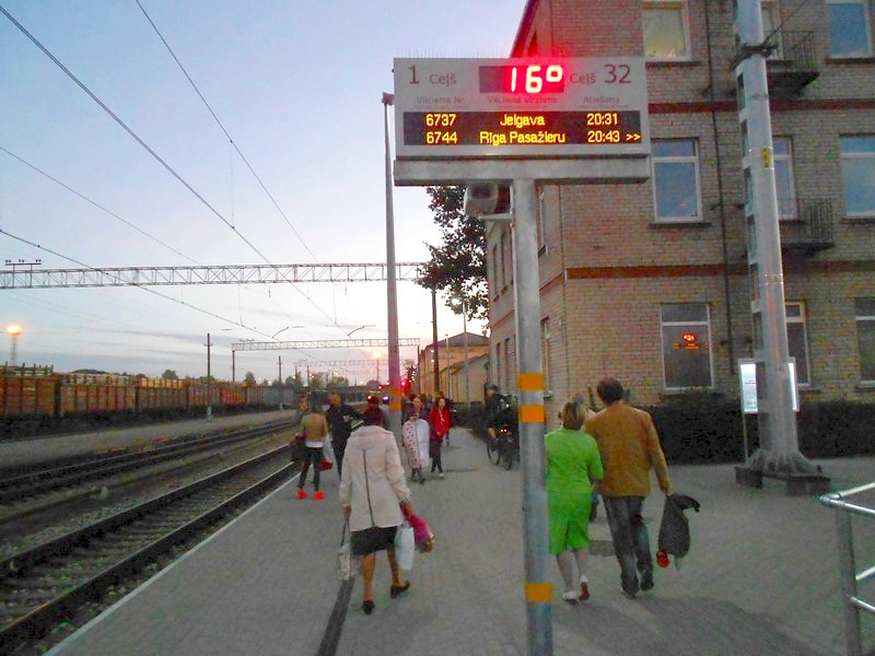 Затем - через мост на левый берег, к станции Торнякалнс. Там на электропоезд. В кассе прошу билет, и только потом узнаю, что неправильно сказал «́Елгава». Хотя по-латышски и нормативно по-русски так, но русскоязычные жители говорят «Елгáва». Равным образом, говорят «Лиепáя» вместо Л́иепая, «Клайпéда» вместо Клáйпеда.