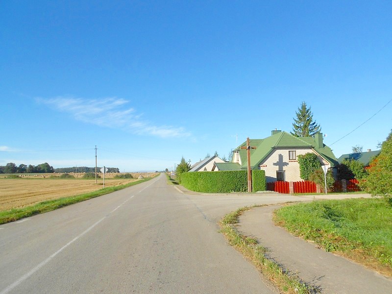 В Лаворишках сворачиваю «наверх», на дорогу местного значения. Она асфальтированная. Движение слабое, что для велосипедной езды очень хорошо. Короткий отдых в поле на выезде из села.