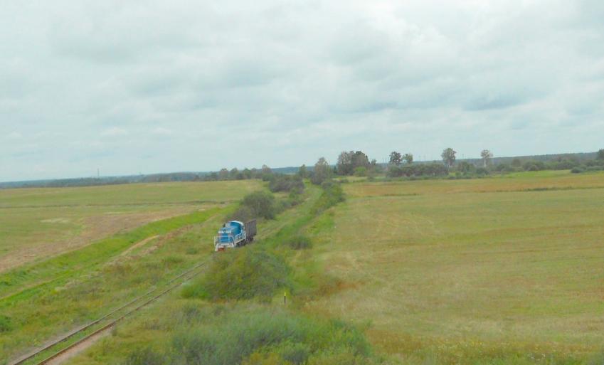 Потом небольшой и неприятный участок грунтовой дороги. Но вот и первый объект исследования - узкоколейная железная дорога торфопредприятия «Балоша» у деревни Клочюнай (Клочуны).