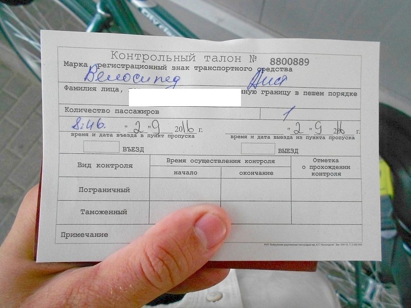 С конца 2014 года белорусско-литовскую границу запрещено пересекать пешком. Но на велосипеде можно. Пограничник выдал талон, в котором указано: транспортное средство - велосипед «Аист».