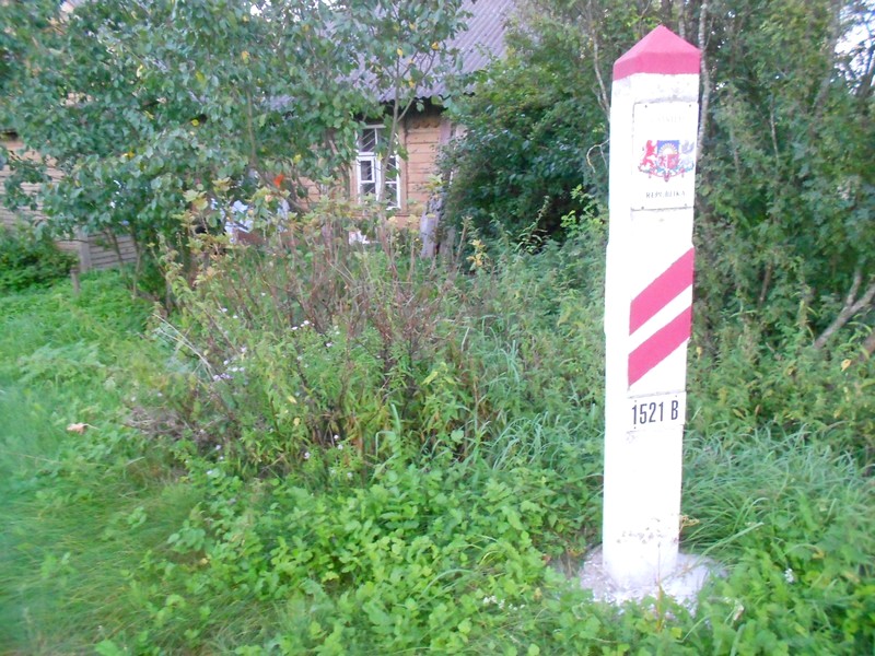 Граница проходит по северным стрелкам станции и отмечена пограничными столбами. Вплотную к путям и столбам стоит казарма - дореволюционный жилой дом железнодорожников. Оказывается, казарма на литовской станции - латвийская, а живёт в ней русская семья. Беседую с ними.
