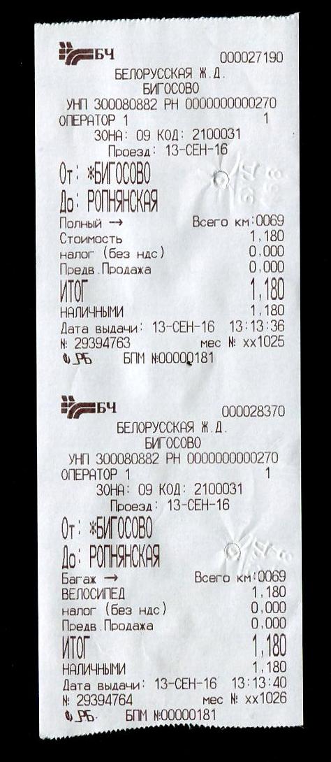 Билет Бигосово - Ропнянская.