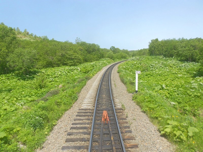 Перегон ------ -------. Конец 179 километра (отсчёт от Корсаков-Порт). Вид на север. Время 13:43.
