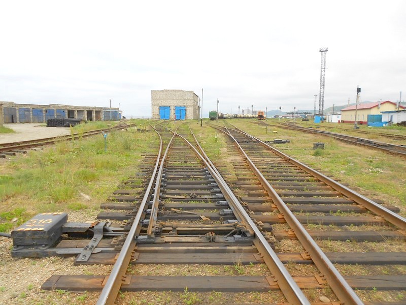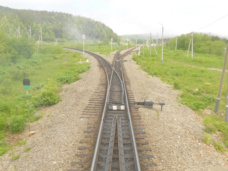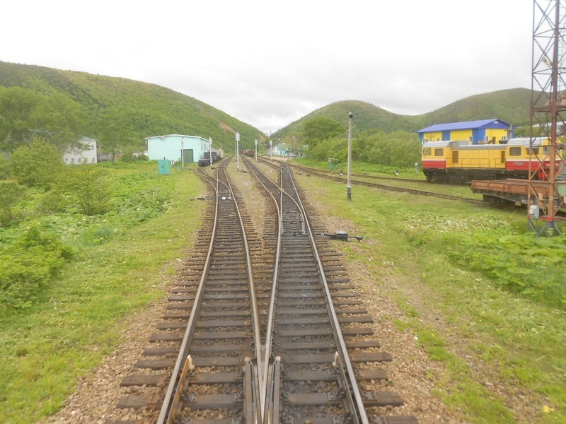 Арсентьевка - единственная оставшаяся узловая станция Сахалина. Вид на север.