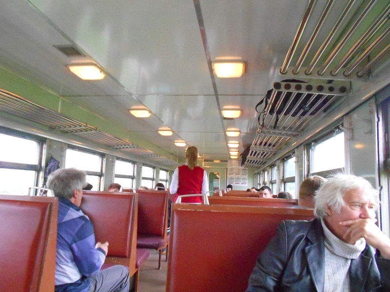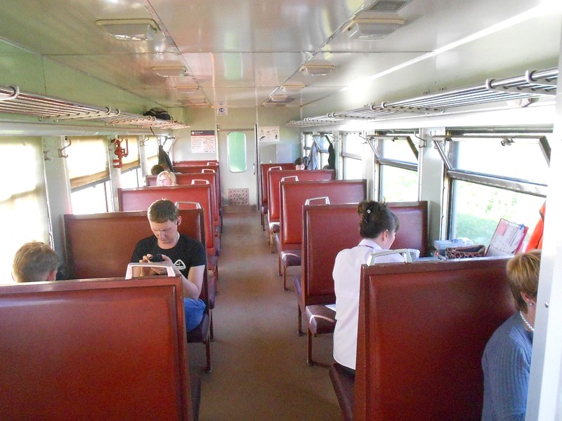 В вагоне дизель-поезда Д2-008 сообщением Томари - Холмск - 77 км. Время 7:37.