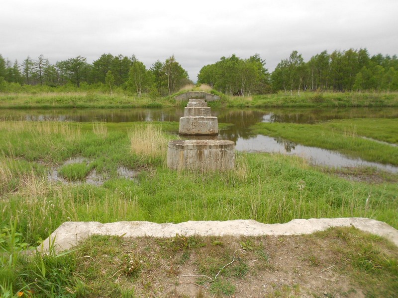 Разрушенный мост через реку Сусуя на линии Дачное - Анива. Время 8:10.