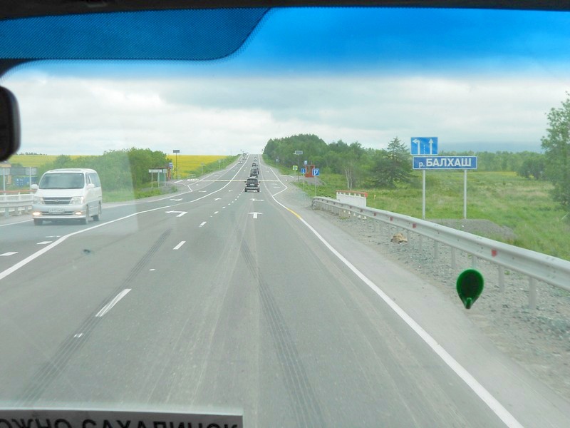 Отсчёт от Южно-Сахалинска через Новодеревенскую. Время 8:43.