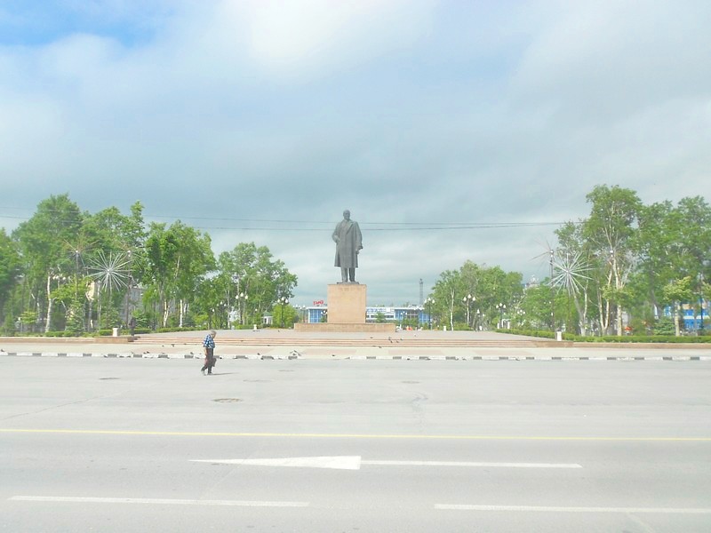 Памятник Ленину на центральной площади Южно-Сахалинска. Время 10:47.