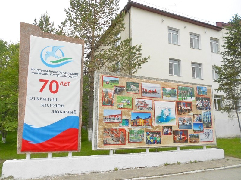 Среди репродукций исторических фотографий, выставленных в центре Анивы, есть