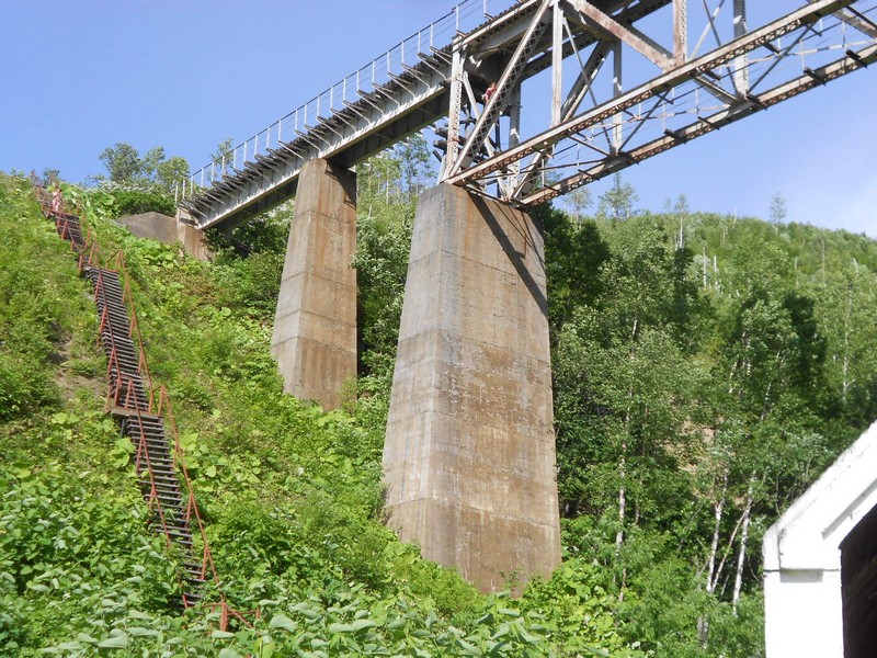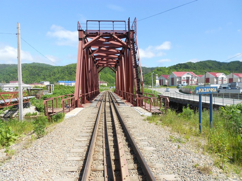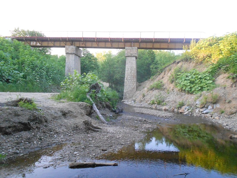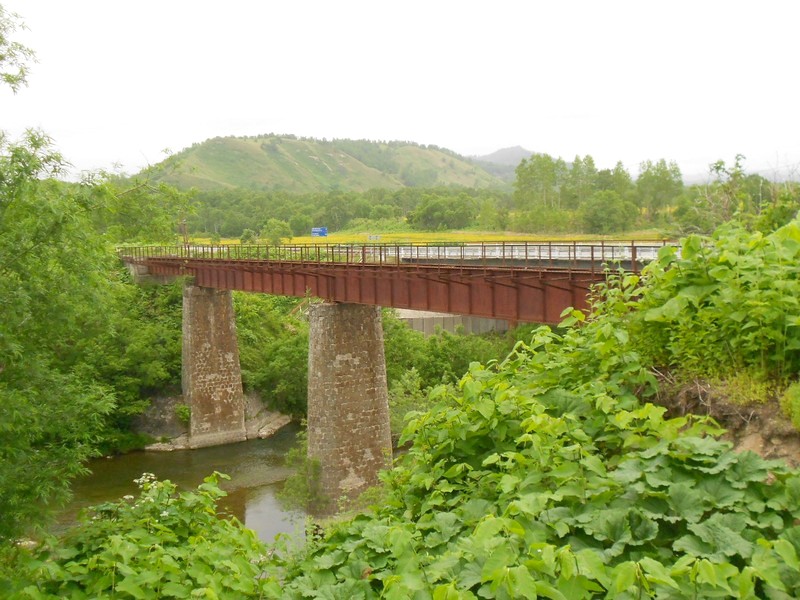 Мост через реку Казачка к югу от станции Невельск. Здесь есть редкое грузовое движение