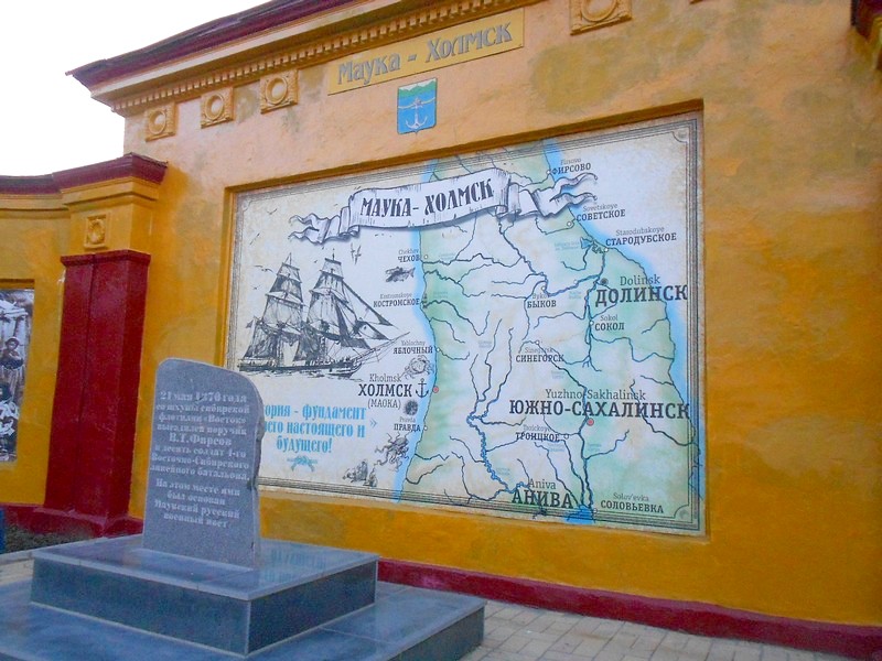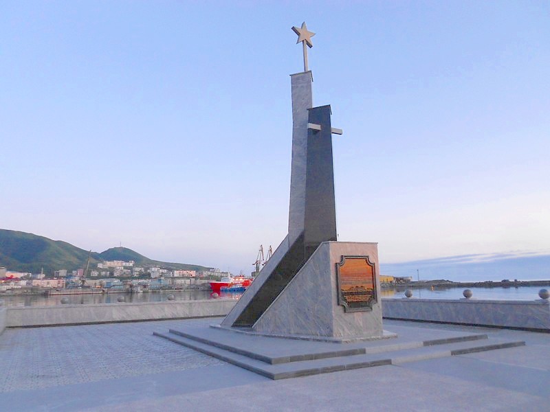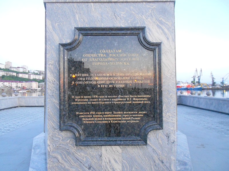 Холмск. Памятник в честь 130-летия города.