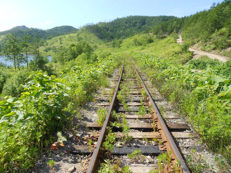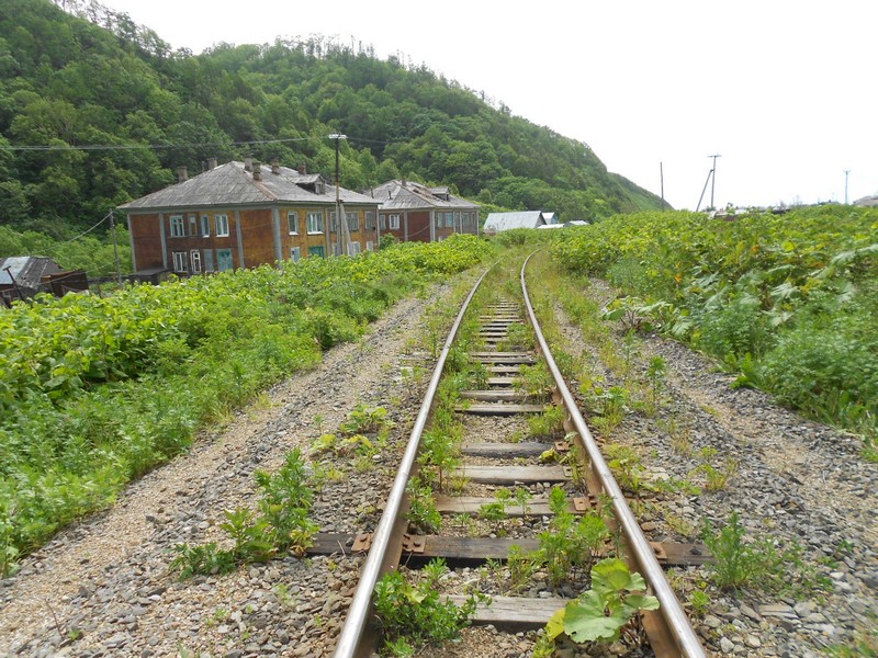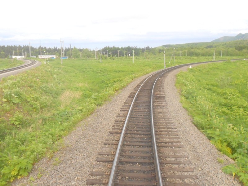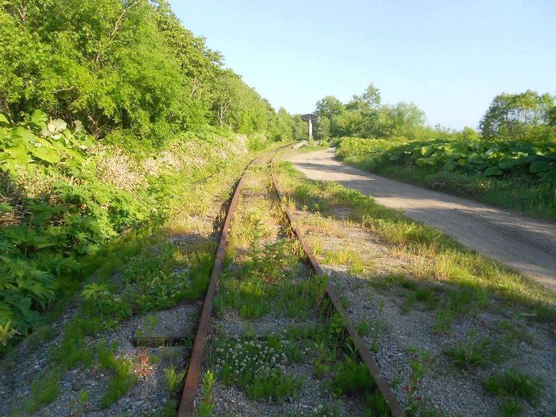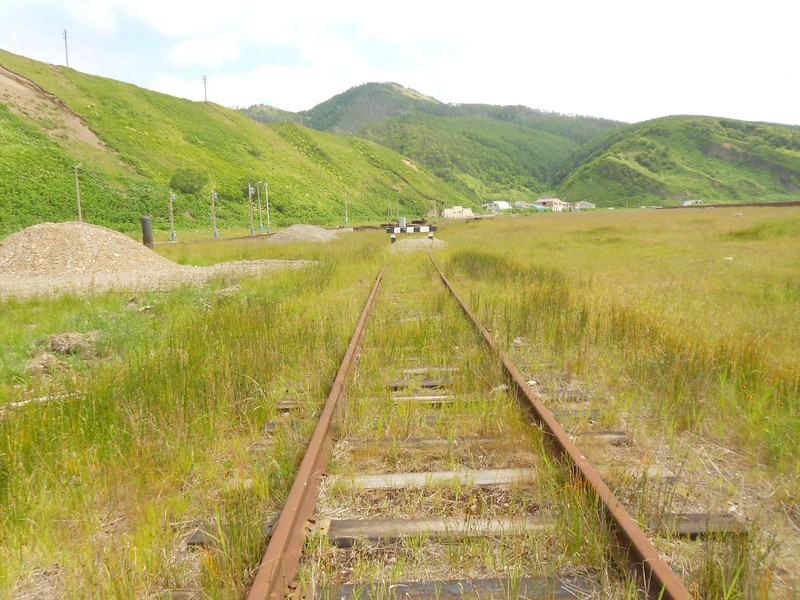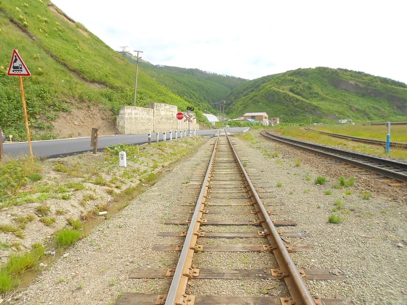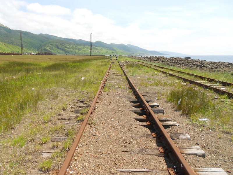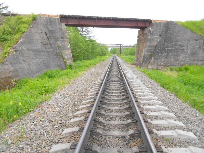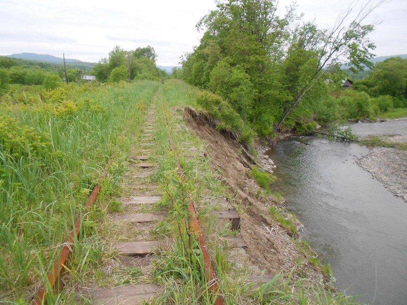 Линия Сахалинская ГРЭС - Вахрушев-Угольный к западу от моста через реку -------. Путь лежит везде,