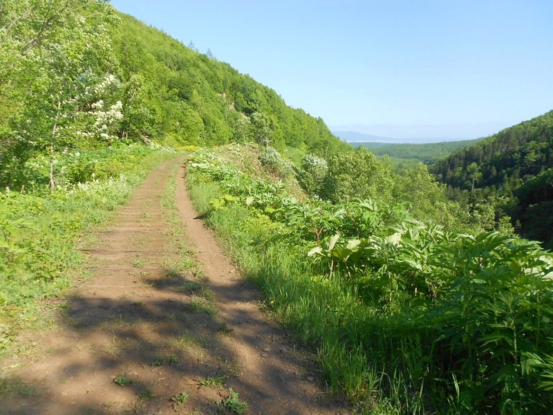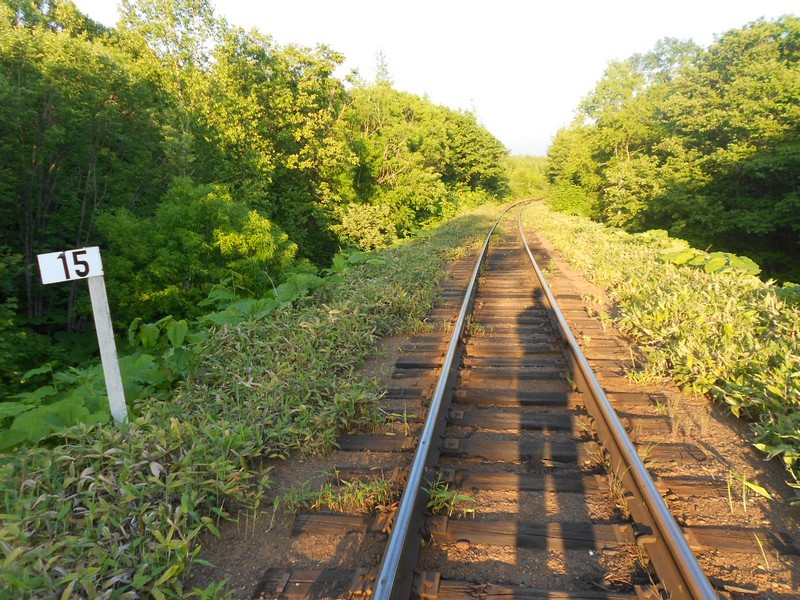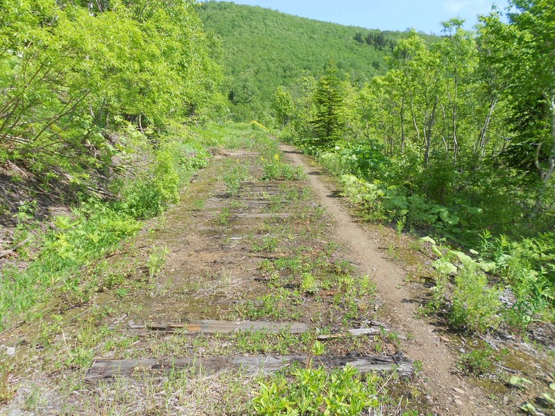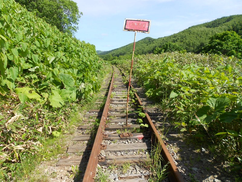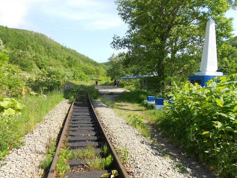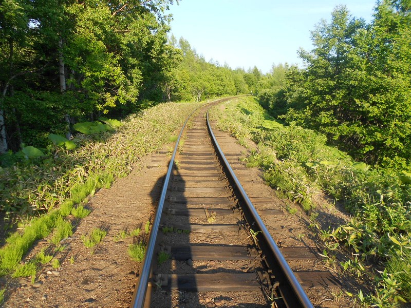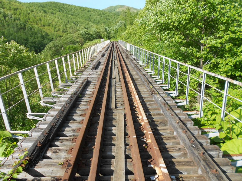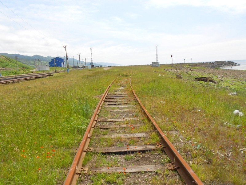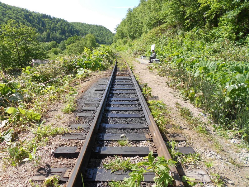 Линия Сахалинская ГРЭС - Вахрушев-Угольный к западу от моста через реку -------. Путь лежит везде,