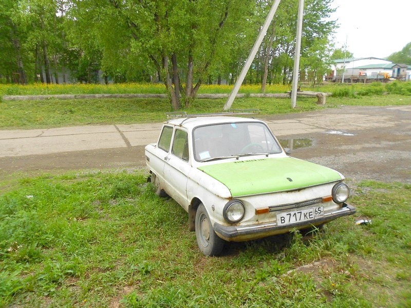 Автомобиль ЗАЗ-968 "Запорожец" в посёлке Восток. Время 9:45.