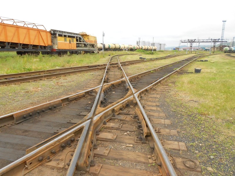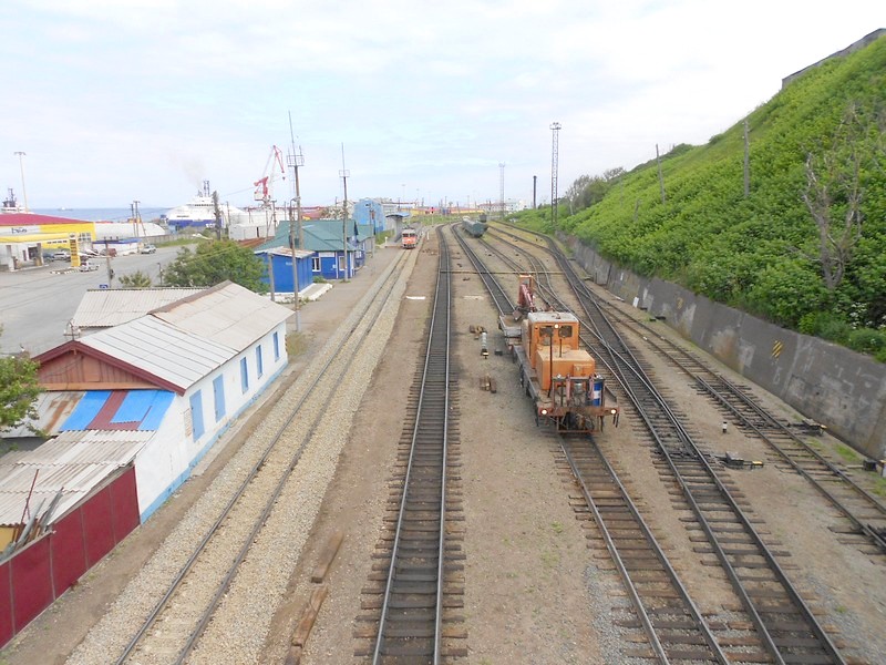 В Холмске с 1973 года действует изолированная железная дорога широкой колеи. Пересечение разноколейных линий.