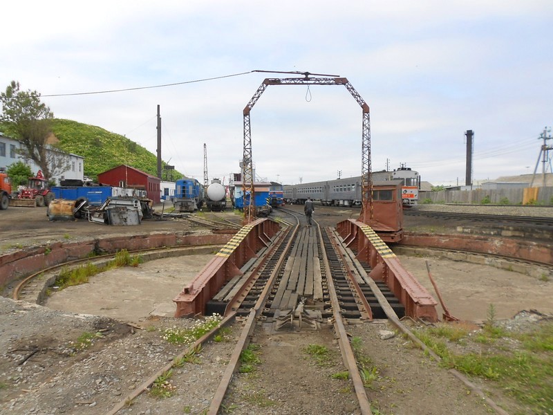 Поворотный круг в депо Холмск-Северный. Он не изменился с "японских" времён. Время 11:13.