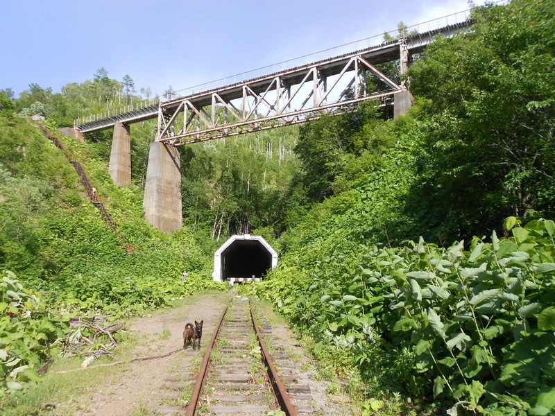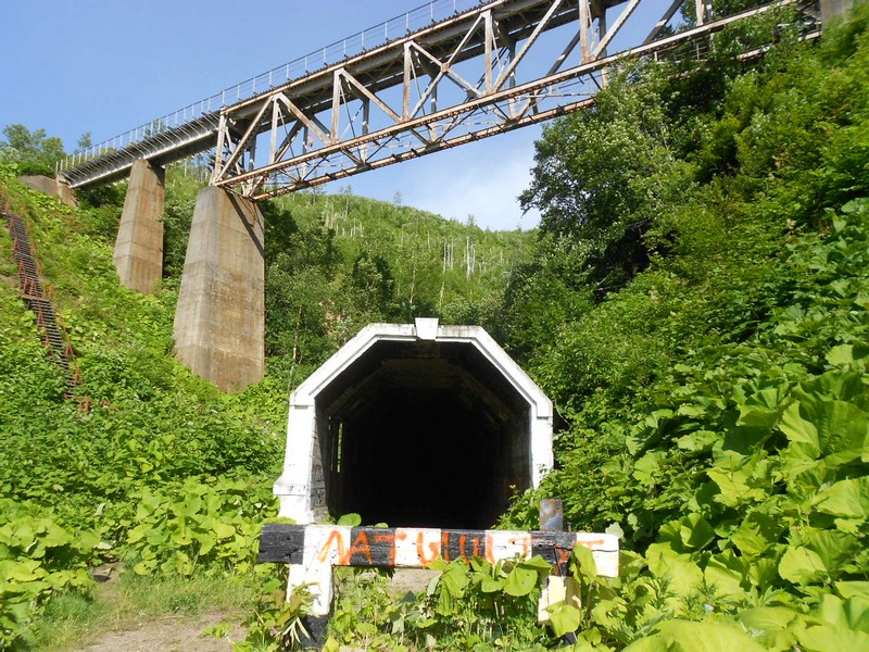 Единственное на Сахалине разноуровневое пересечение действующих железнодорожных линий.
