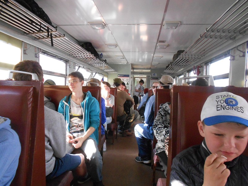 В вагоне дизель-поезда на Корсаков. Время 19:13.
