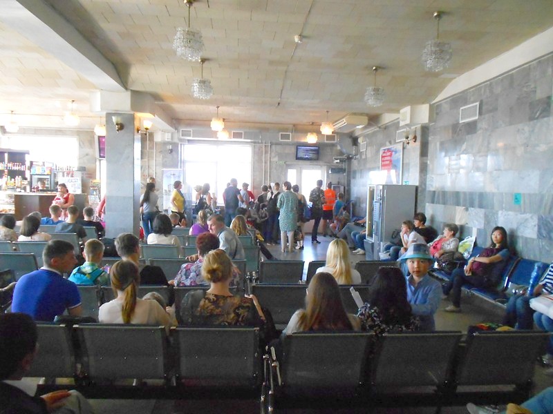 На вокзале Южно-Сахалинск. Время 9:05.