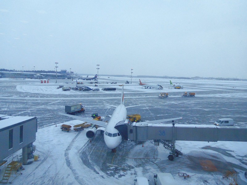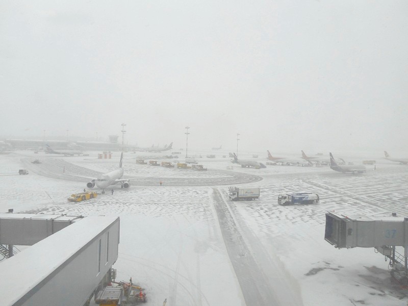 Аэропорт Шереметьево. Вид на заснеженное лётное поле.