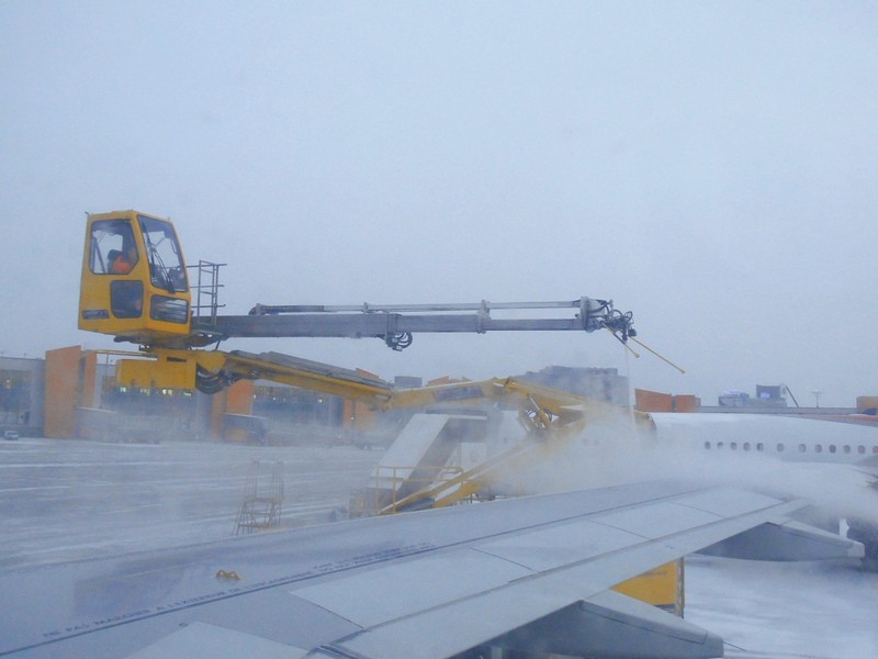 Аэропорт Шереметьево. Перед вылетом производится противообледенительная обработка.