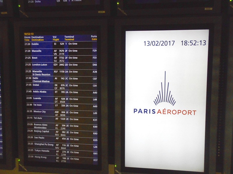В аэропорту Париж-Roissy (Charles de Gaulle). Табло с ближайшими рейсами.