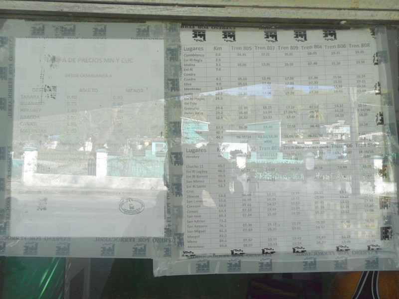 Вместо Матансаса (89 км от Гаваны-Касабланка) электропоезда уже около месяца ходили только до станции Канаси в связи с обрывом контактной сети, который пофигистам "в лом" устранять. Пофигистам даже "в лом" исправить написанный фломастером на "школьной" доске пункт назначения с Матансаса на Канаси. Я сам бы исправил, если бы узнал об этом до отправления поезда.