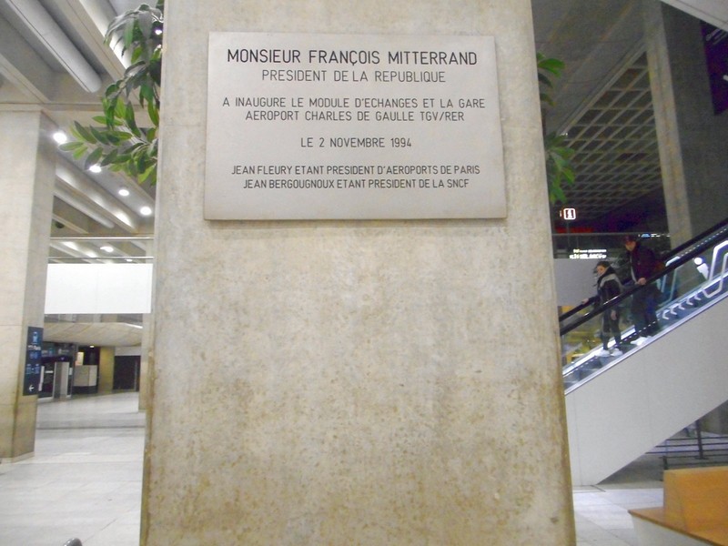 Памятная табличка на станции скоростных поездов в аэропорту Руасси-Шарль-де-Голль.