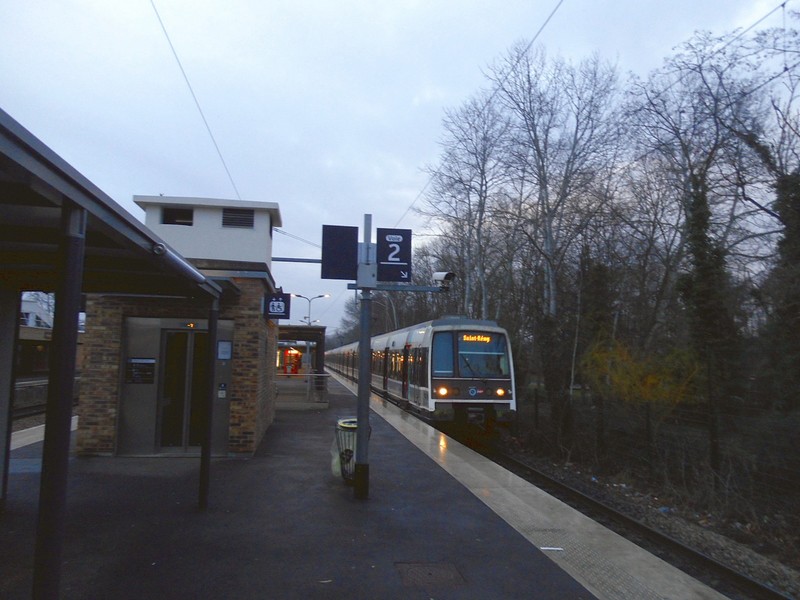 Станция пригородных поездов Parc des Expositions. Прибывает электропоезд, следующий в центр Парижа.