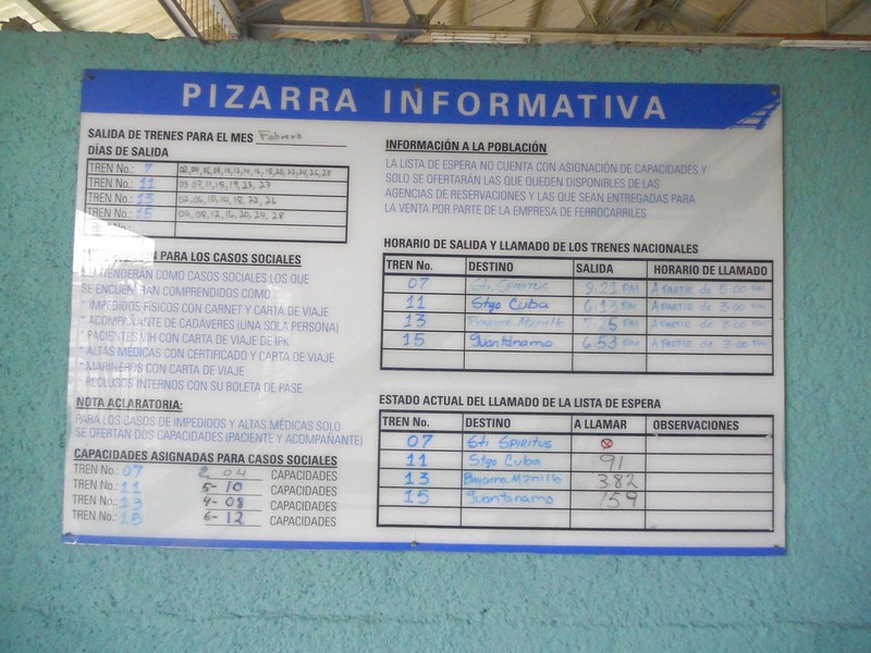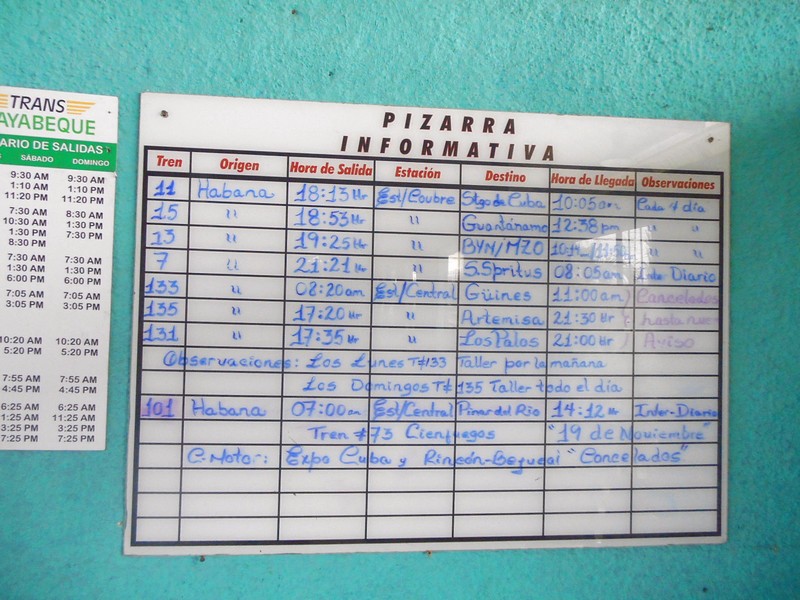 Но кубинцы-пофигисты почти в половине случаев это не делают. Или приходишь - написано, что поезд будет, а приходишь через пару часов - уже появилась приписка "anulado".