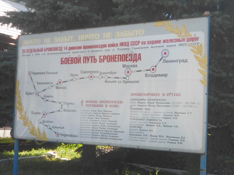 Владимир, привокзальная площадь. Схема боевого пути сформированного здесь бронепоезда.