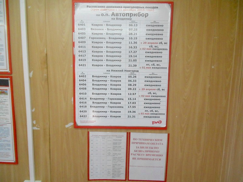 Платформа Автоприбор на востоке Владимира. Расписание движения пригородных поездов.